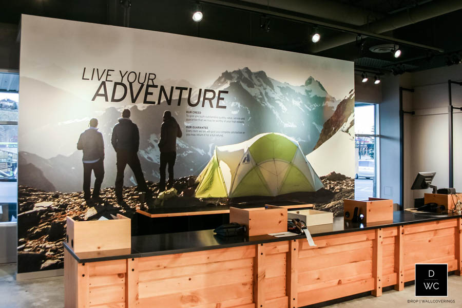 Drop Wallcoverings was commissioned to complete this amazing commercial mural at a local Eddie Bauer retail store in S.W Calgary. The image was supplied by Rainier Industries. This install was a lot of fun!